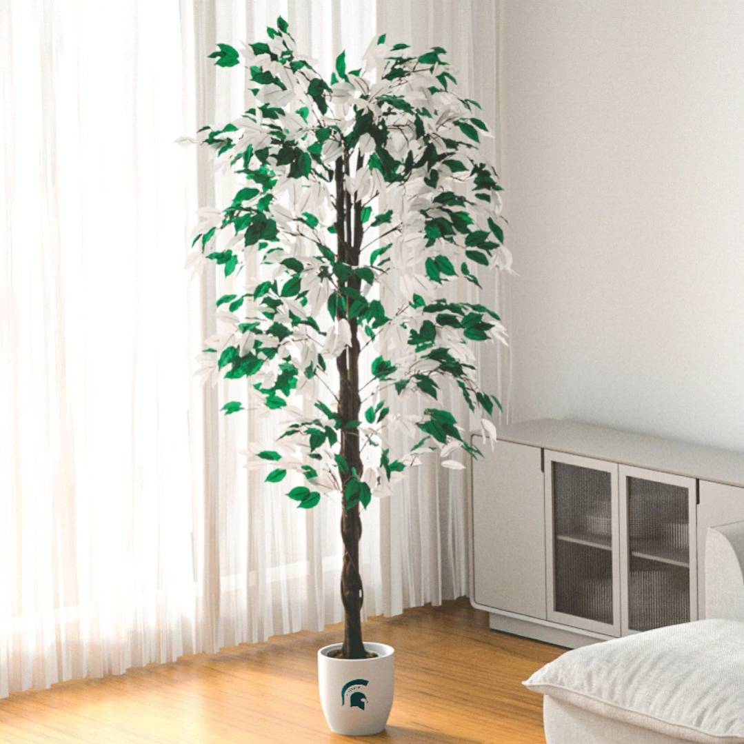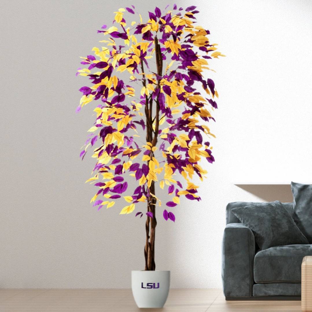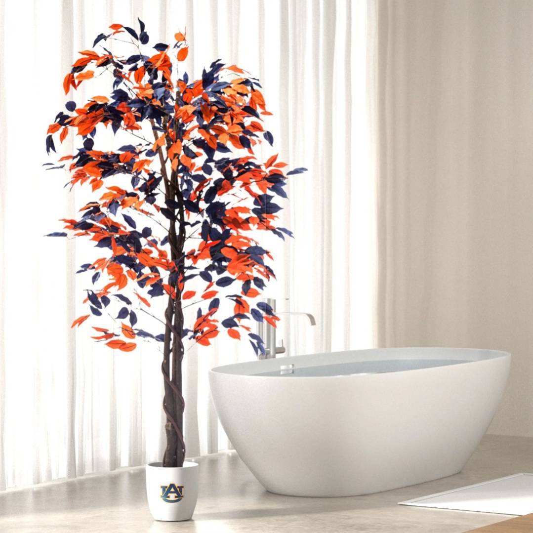 The Alabama, LSU, Michigan State or Auburn 6ft. Silk Ficus will be the focal point of any man cave or tailgating event. The beautifully crafted silk leaves are in school colors. The trunk is made of natural wood. Hard plastic pot with Alabama, LSU, Spartan, or Auburn logo.