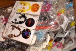 Cada caja probablemente incluirá una mezcla de: aretes en forma de flor, aretes de aro, aretes largos, aretes de pluma, aretes de madera, collares largos, collares de piedras, aretes en forma de corazón, pulceras, anillos grandes, aretes con perlas, anillos en forma de animales, anillos florales, aretes que cuelgan y más!
