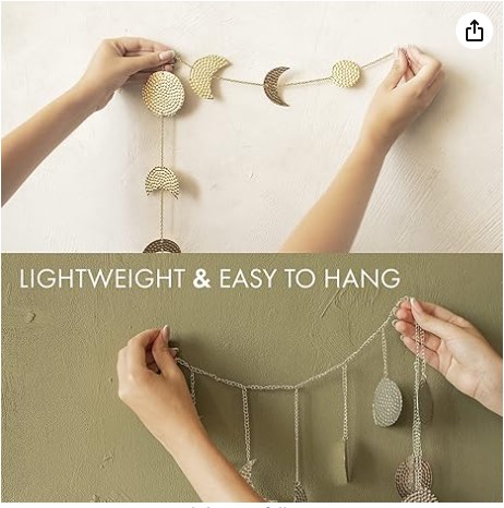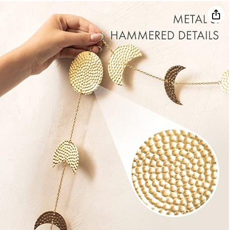 - Serenidad a la Luz de la Luna - Llena tu hogar de comodidad y estilo bohemio con la guirnalda de fases lunares en metal dorado martillado de Vellax. Ya sea en tu dormitorio, escritorio, espejo o chimenea, deja que las fases lunares transmitan tranquilidad a tu día a día