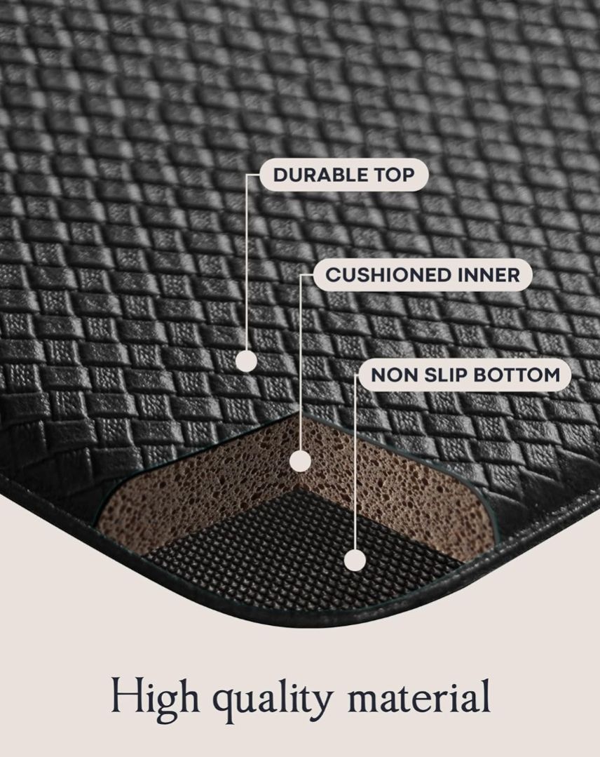 - Grosor Óptimo - Diseñados con 0.4" (10 mm), estos tapetes ofrecen el equilibrio perfecto entre amortiguación suave y soporte firme — ideal para largas horas de pie
