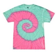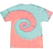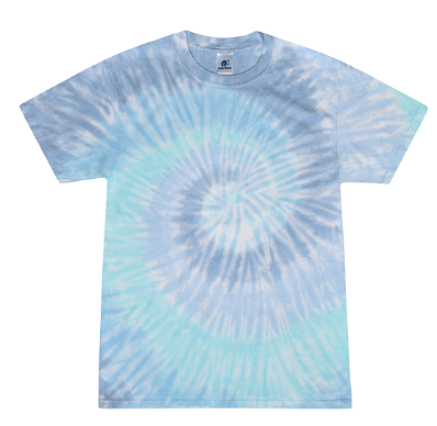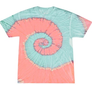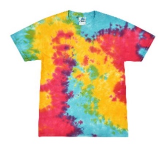 Paquetes surtidos nuevos de excedente (overstock) de camisetas tie dye lisas, vendidos a $/unidad.