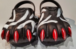 The goods are molded from comfortable, durable, odor-resistant material and come in a wide variety of colors and sizes. Slip on a pair of Clawz, and you’ll immediately be transformed from civilized to savage, from city to jungle, and from human to beast!