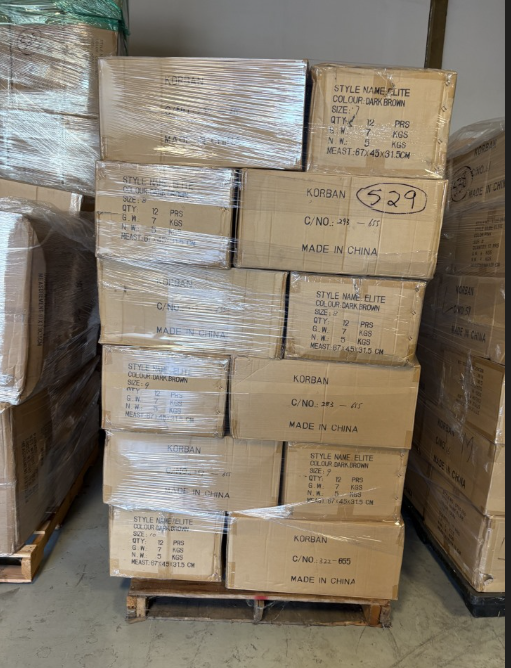 Las cargas están completamente manifestadas e incluyen categorías como: zapatos, pantuflas y botas.