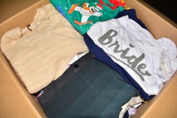 Styles may include: Shirts, sweaters, pants, jeans, jackets, leggings, dresses, skirts, tops, t-shirts, pajamas, blouses, onesies, cargo pants, hoodies, seasonal clothing (ski pants/suits), dress shirts, robes and more...