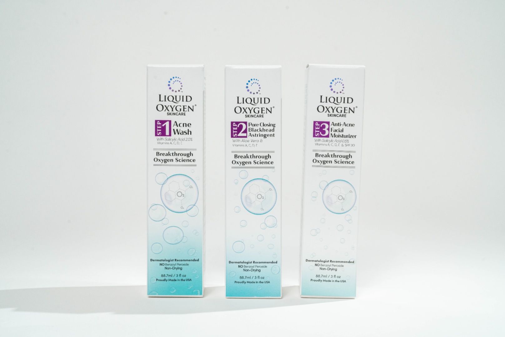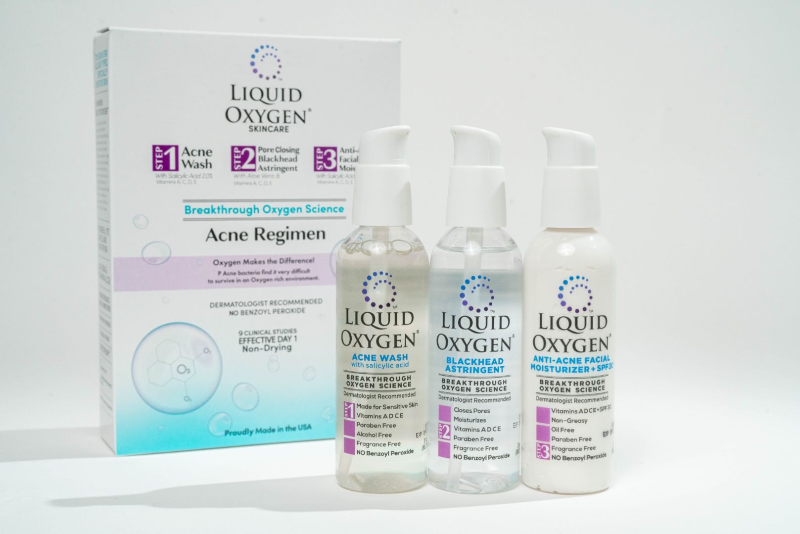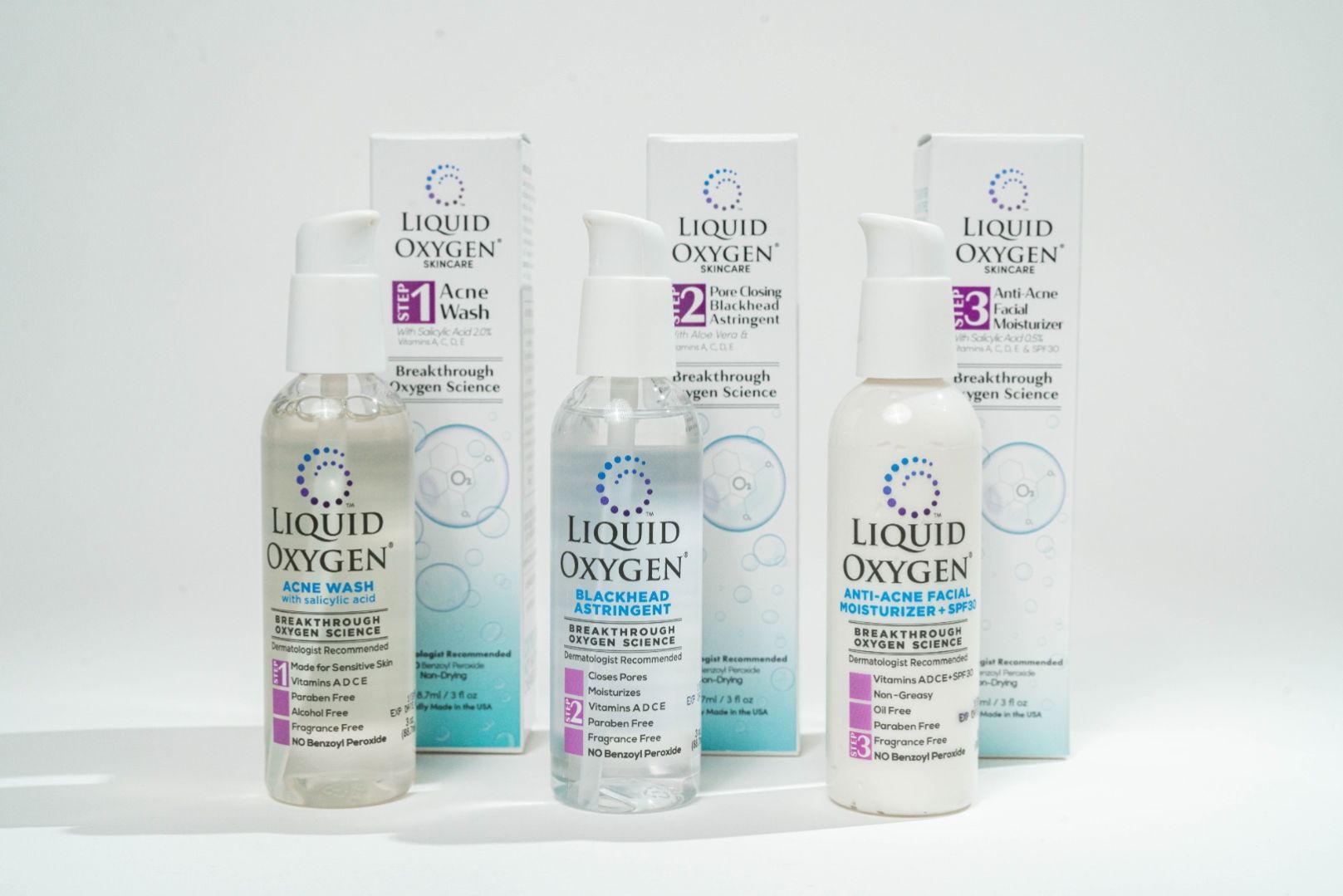 3. Liquid Oxyen's proprietary Oxygen Science kills >99.999% of acne bacteria "ON CONTACT " See Clinical Studies attached.