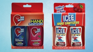 Goods include: 2 x 2.7oz Airheads sanitizer with blue raspberry and strawberry scents, 2 x 2.7oz Icee Cherry sanitizer cherry scented, 2 x 2.7oz Warheads sanitizer with green apple and lemon scents, 2 x 2.7oz Mike & Ikes Sanitizer with lemon and strawberry scents, 1oz Smarties sanitizer strawberry scented, 1oz Airheads Sanitizer watermelon scented.
