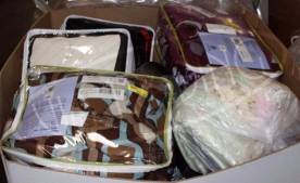 Lots typically contain: comforters, quilts, bed-in-bag sets & at times sheets, pillow shams, throws & other related items.