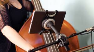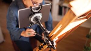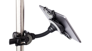Use this iPad/tablet holder on a desk or table. Mount it to a tripod, music stand, or mic. Clamp it to an exercise machine or entertainment center.