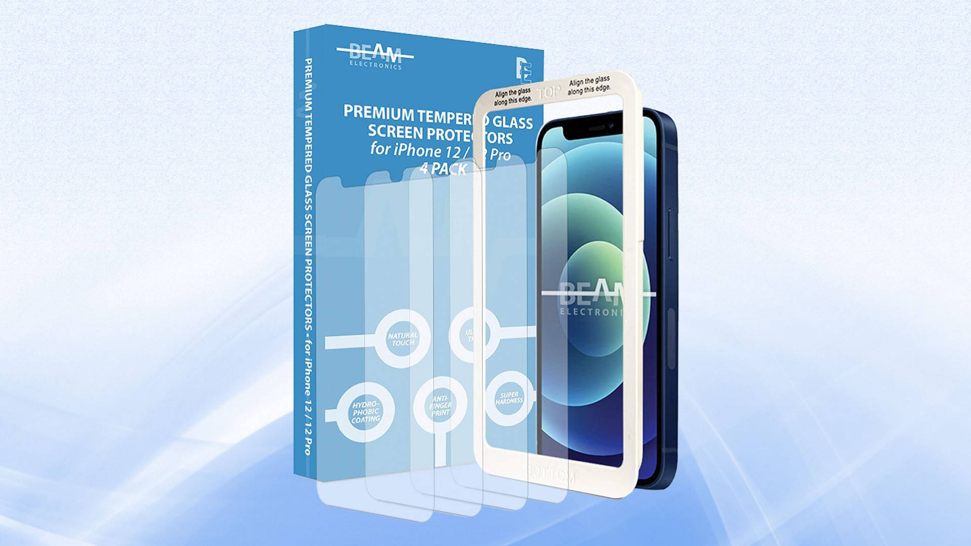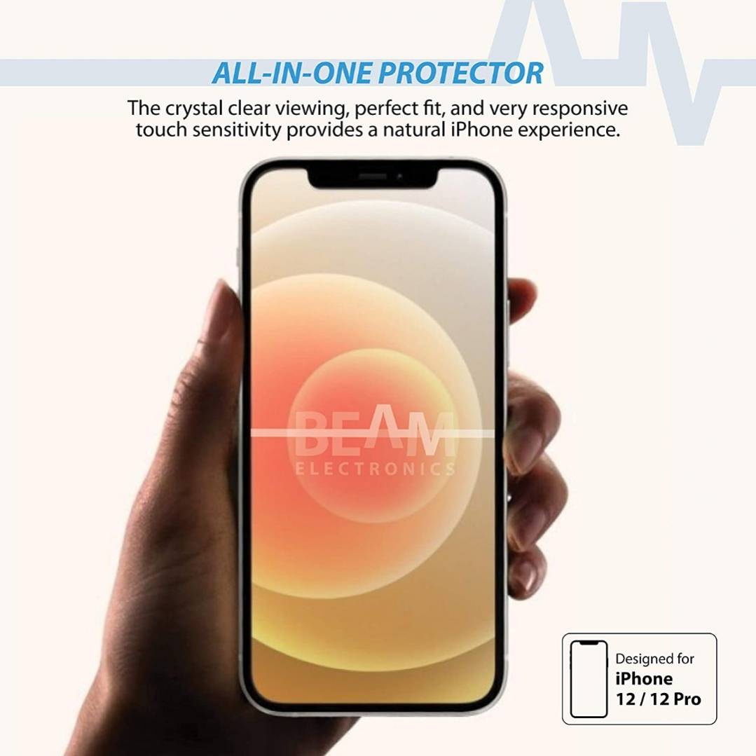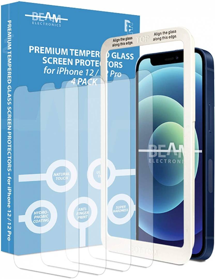 [4 Pack] Screen Protector for iPhone 12 Pro, Beam Electronics Tempered Glass Screen Protector- 99% Touch Accurate with Easy Installation Tray and Accessories.