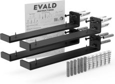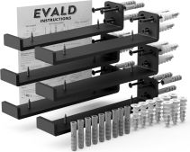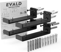 EVALD Floating Shelf Brackets w/ Lip | Hidden Black Carbon Steel Brackets for 4-inch Board (3 5/9" True Size) Kitchen, Nursery | Minimalist Design for Fireplace Mantel, Bookshelves, Bar Shelves 4 Pack