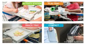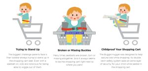The Buggie Huggie is an innovative shopping cart cover that attaches to your shopping cart, designed to make shopping with your toddlers more safe and fun! Our shopping cart safety cover/tray and Phone Holder is designed to help secure kids in the cart while shopping and provide entertainment for them. The tray can be used for snacks, toys, coloring books, and more.