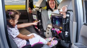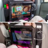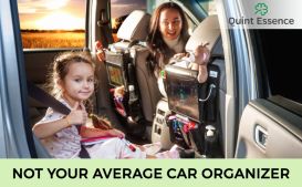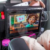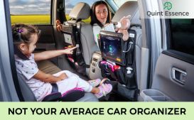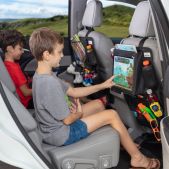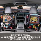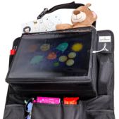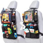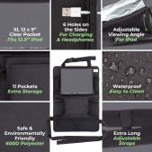 Quint Essence Heavy Duty Car Seat Organizer, Adjustable XL 12.9” Clear Touchscreen Tablet Holder, 11 Storage Pockets Kick Mats Back Seat Protector for kids, car travel accessories (2 Pack)