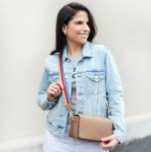 Kit includes wipeable nylon material, an inner divider, removable changing mat, and adjustable crossbody strap.
