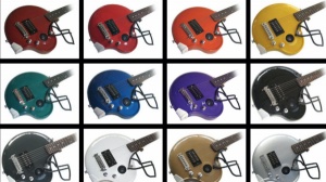 The Helmet Guitar is a unique and innovative guitar that comes in 12 finishes with five colors of face masks to choose from right in the package, providing a custom look to fit the individual’s personal taste.