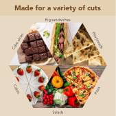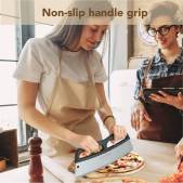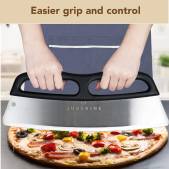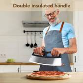 - New ergonomic handle- made of double insulated plastic gives you a comfortable double hands-on grip and better control using an easy rocking motion for cutting pizzas, pita bread, sandwiches, cake slices and much more.