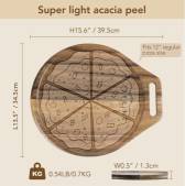 - Versatile- light and sturdy wooden pizza peel made from acacia wood is perfect for creating and launching your homemade pizzas, preparing foods for a busy household or making a winsome snack board for your guests.