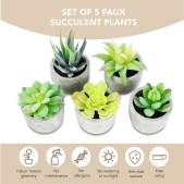 - Easy and free- green niche to keep. These five small fake succulents have no need for setup, special lighting, or care. You can enjoy this indoor plant decor set straight out of the box all year round.