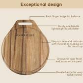 JUBERINE ACACIA WOOD PIZZA PEEL- PORTABLE 12" WOODEN PIZZA PADDLE AND SERVING PIZZA BOARD- RESTAURANT QUALITY PIZZA CUTTING BOARD FOR EASY FOOD PREP ON THE GO