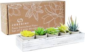 JUBERINE FAUX SUCCULENTS SET OF 5 WITH WOODEN BOX -DELIGHTFUL EASY TO SET UP FAKE SUCCULENTS INDOOR DECOR -SMALL POTTED SUCCULENT PLANTS ARTIFICIAL- FOR YOUR HOME OR OFFICE