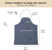 - Stylish- unisex cotton aprons best fits medium-large size person 5.2”-5.6” height with good side coverage. An adjustable neck tie reduces neck strain and extra-long waist ties can secure your apron at the front or back.