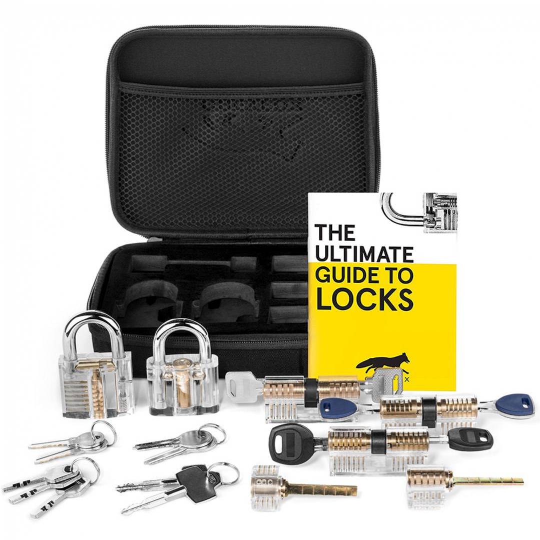 The Grey Fox practice lock picking sets are the complete “Spy-Style” kit that’s great for everyone. With varying degrees of challenge, each lock is designed to to take your skill set to a new level. Using a clear cutaway lock to understand the mechanics of locks will lift the veil of the “illusion of security” and show how unsafe all those locks are that you use in your daily life (and help you improve your own personal security).