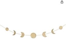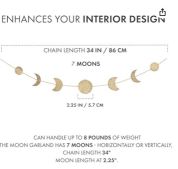 - Attention to Detail - Revel in the meticulous craftsmanship of Vellax's wall hanging gold moon phase garland. With 7 moons packaged in a small crafted paper box and a neat pure linen bag, the total length of 34" ensures a beautiful arrangement, with each moon hanging gracefully between 2"