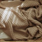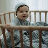 | Fine Pointelle Blanket and Bonnet - Tan |