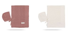 | Fine Pointelle Blanket and Bonnet - Mauve |