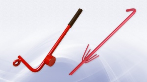 The Hammer/Prybar is also built of steel and is a custom tool that pounds the stake in and can extract it.