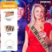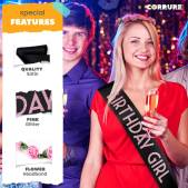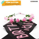 | B083512DLL | 722537792035 | Sash Glitter Set (Birthday Girl - Black-Pink) + Headband Flower Pink |