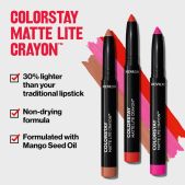 Revlon ColorStay Matte Light Crayon delivers bold, matte color in a lightweight, comfortable formula. Glides on smoothly and lasts all day without drying out your lips.